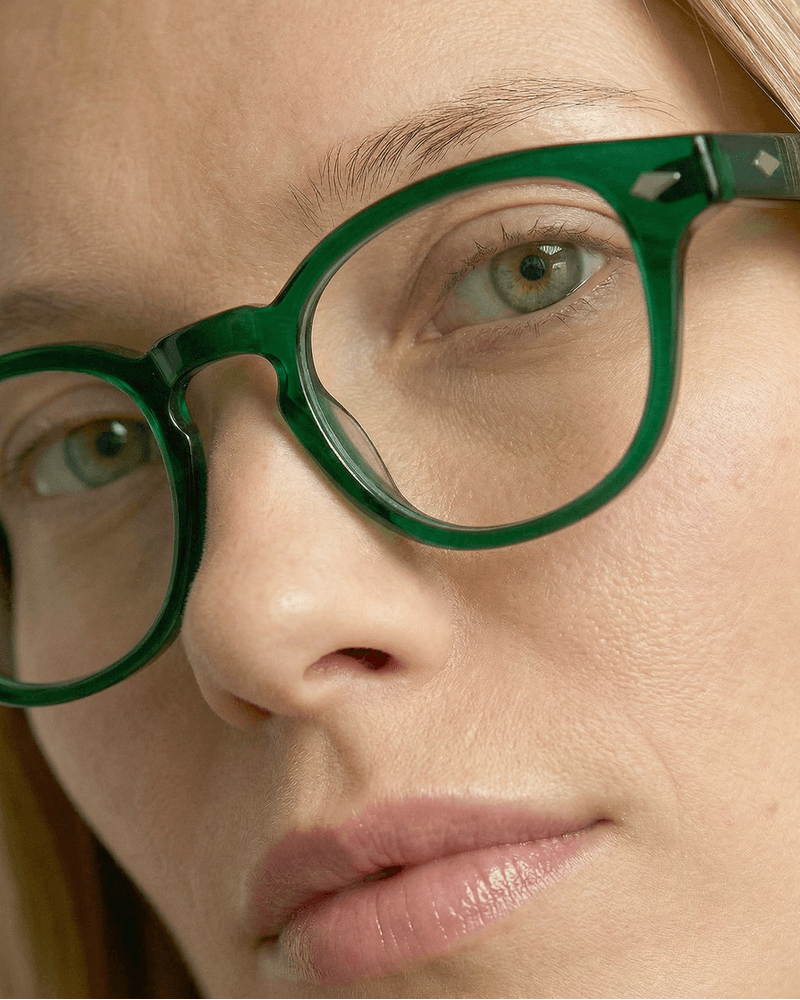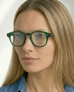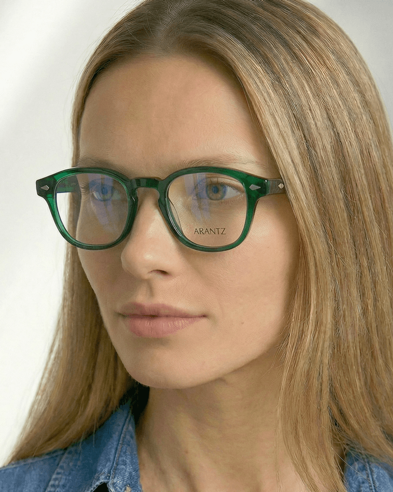 A armação apresenta um formato arredondado com linhas firmes e bem definidas, criando uma frente equilibrada que emoldura o olhar com naturalidade e presença. As proporções são cuidadosamente trabalhadas para oferecer conforto visual e excelente adaptação ao rosto, enquanto o acabamento translúcido adiciona profundidade e sofisticação ao conjunto.