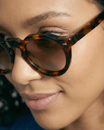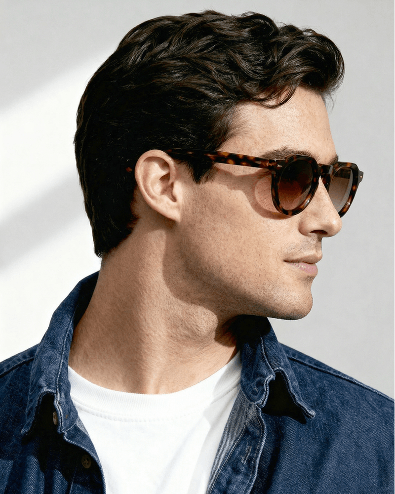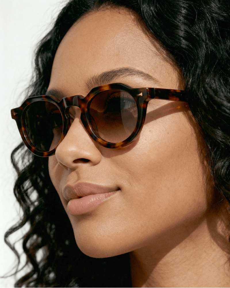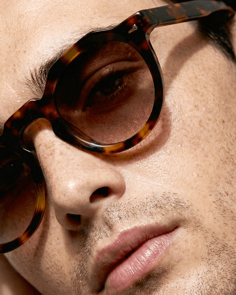 O aro possui espessura bem dosada, oferecendo presença sem excesso e valorizando o jogo entre curvas e volumes. As lentes circulares contribuem para uma estética sofisticada e levemente retrô, reinterpretada com acabamento contemporâneo e proporções atuais.