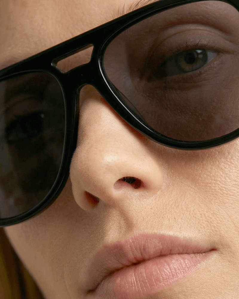 As hastes seguem uma linha contínua e funcional, garantindo conforto, estabilidade e excelente adaptação ao uso diário. Nodo é um solar versátil e atemporal, ideal para quem busca um óculos de caráter arquitetônico.