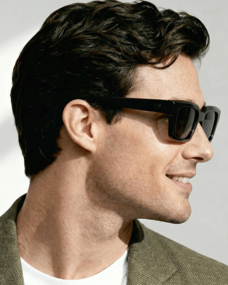 As hastes seguem uma linha contínua e limpa, reforçando a estética minimalista e a sensação de construção precisa e bem resolvida. O Vantage é um óculos de identidade forte e contemporânea, ideal para quem busca um modelo moderno, versátil e sofisticado, capaz de transitar com naturalidade entre produções urbanas, elegantes e atemporais.